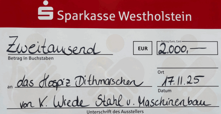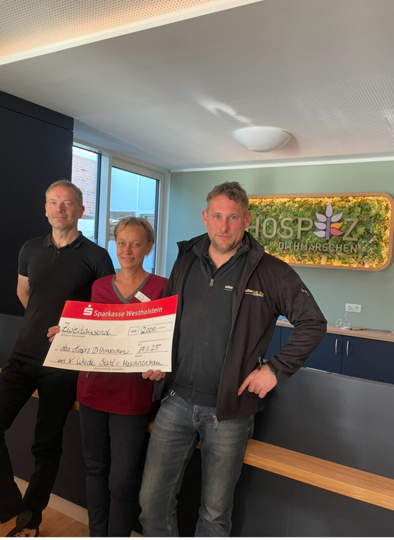 Am Montag dieser Woche waren wir eingeladen zur Übergabe eines Spendenschecks in Höhe von 2.000,- € für den Freundeskreis Hospiz Dithmarschen e.V. in Meldorf.